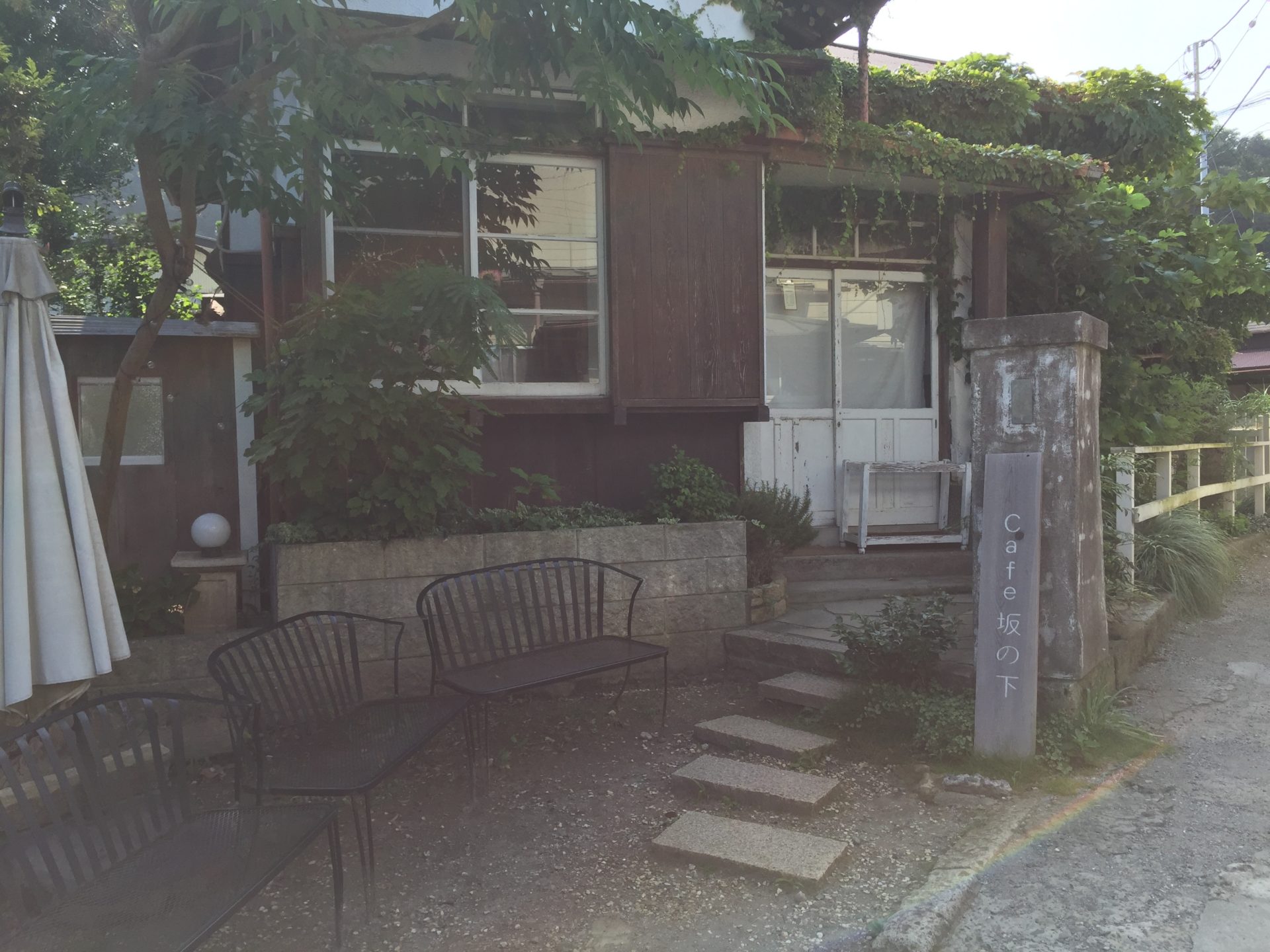 從江之島電鐵的極樂寺站或長谷站向由比濱方向悠閒漫步,約20分鐘即可到達位於後巷的Café 坂之下。