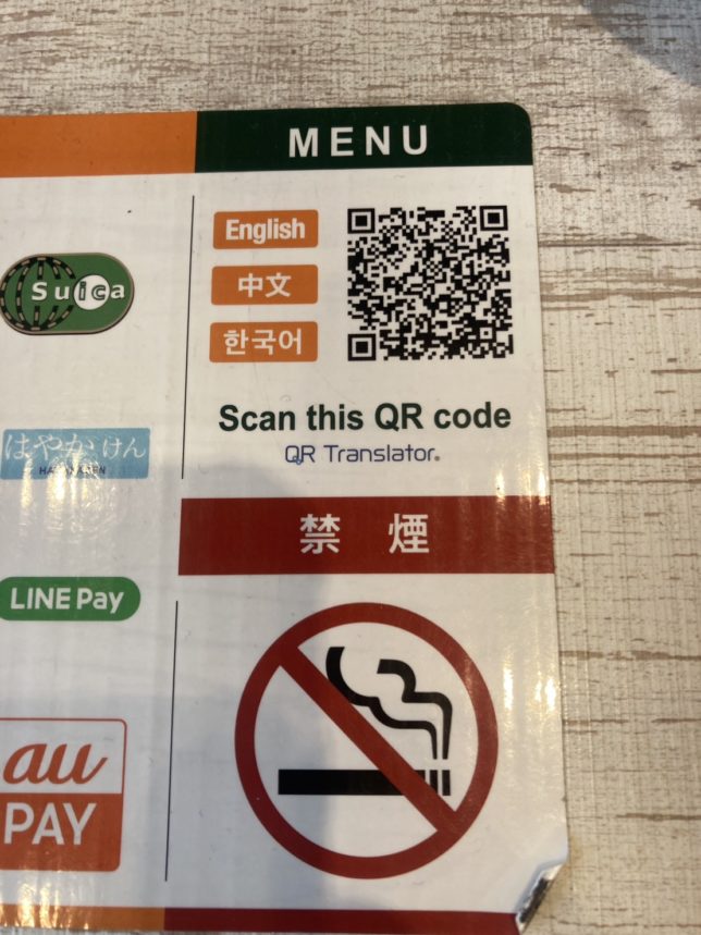 First of all, when I asked if there was an English menu, I was told “no”. And none of the staff could speak English. But don’t worry. There is a QR code to access the English menu in front of the cash register, and this is the link to the English menu. The staff are very kind even though they are busy.