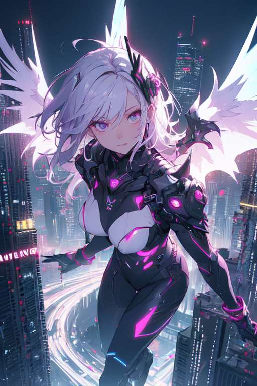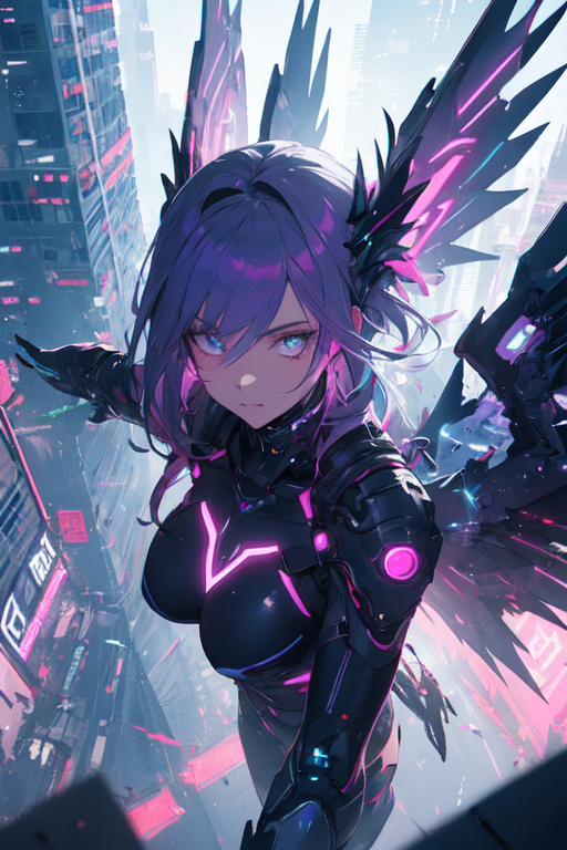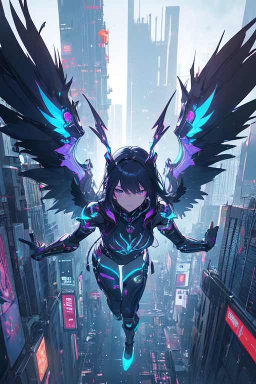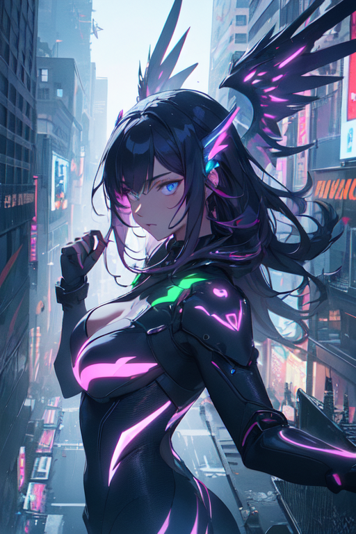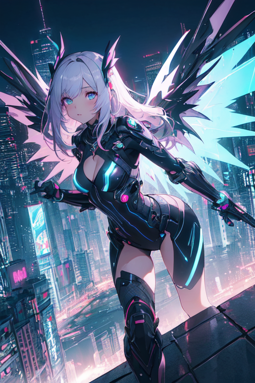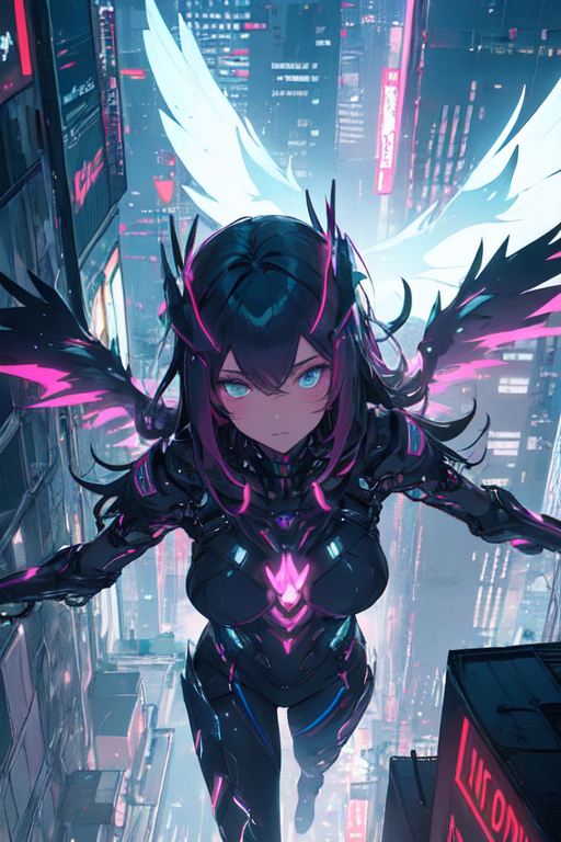 In the depths of Night City, as the clock struck midnight and the neon lights bathed the cityscape in a pulsating glow, a figure emerged from the shadows. Cloaked in mystery and wielding the power of cybernetic enhancements, she became known as Mirage, a cyberpunk girl with neon wings. Her true identity, however, remained obscured, a enigma that fascinated and confounded the denizens of the city.