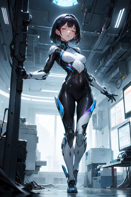 With meticulous care, they draped the transparent, flexible bodysuit over Mirage’s nearly bare skin. Its nanofiber mesh clung to her form, as if molded specifically for her. The suit seemed like an ethereal second skin, revealing the contours of her body while providing an otherworldly shimmer as nanobots infused with her neural network.