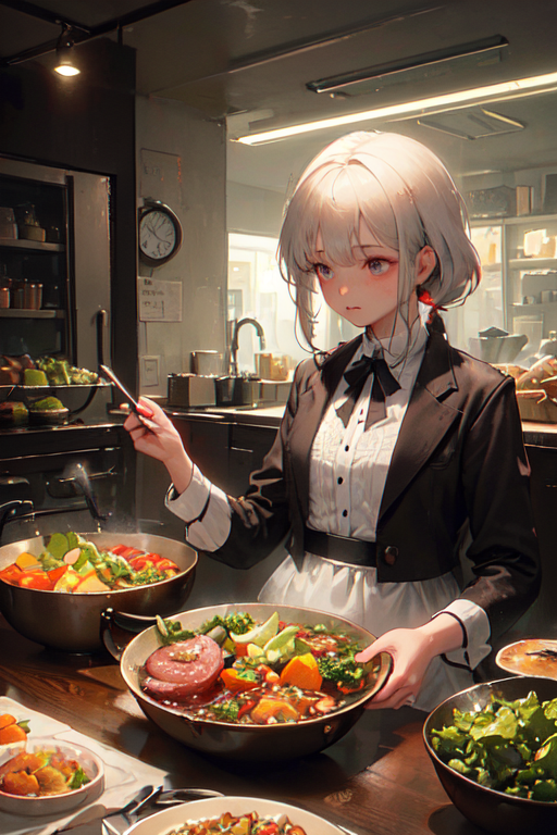 Her meals were a delicate balance of sustenance and efficiency, carefully crafted to fuel her cybernetic body and provide the nourishment she needed. With a sense of purpose, she would prepare a modest spread, consisting of nutrient-rich foods that sustained her in her ongoing battle against the city’s darkness.