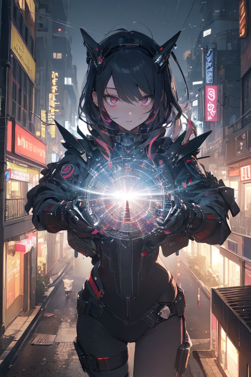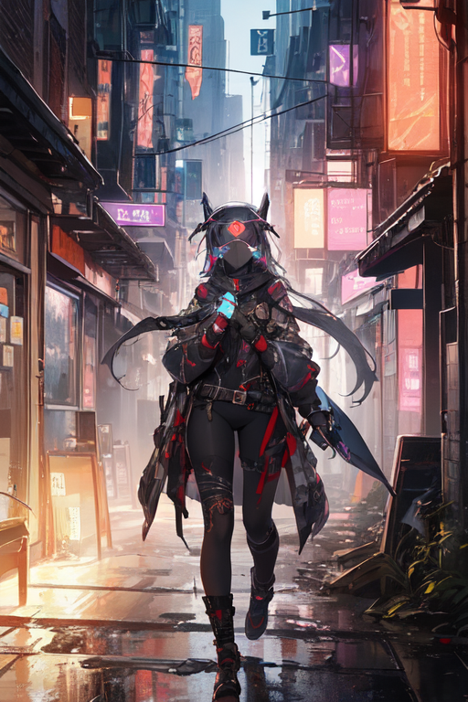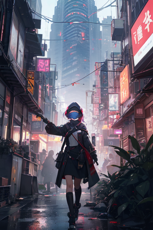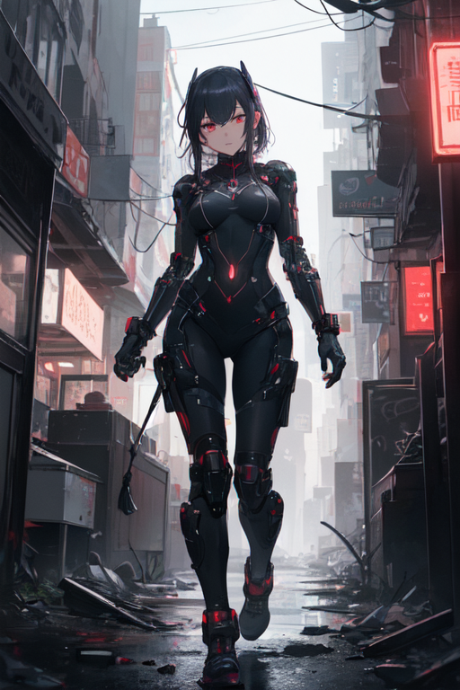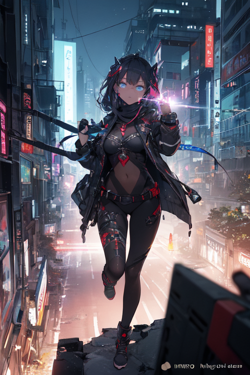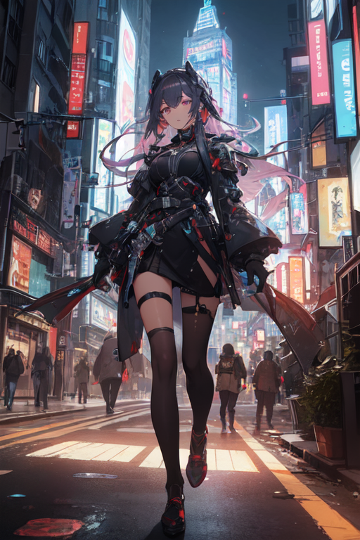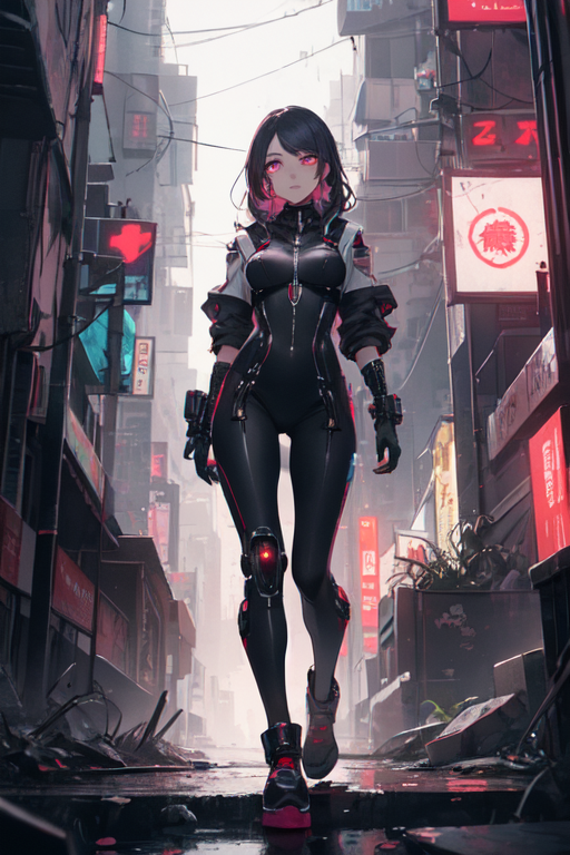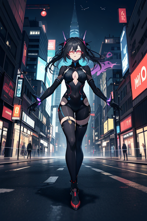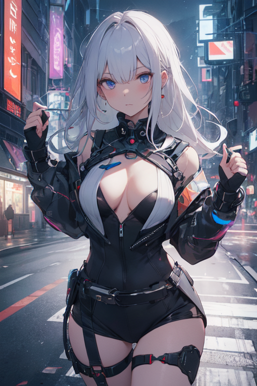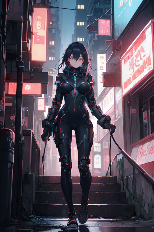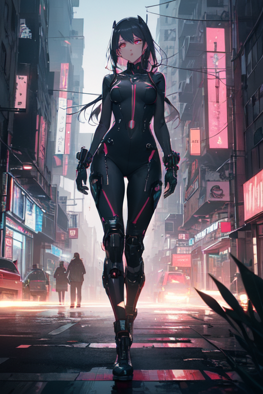 In the heart of Night City, where neon lights painted a vibrant tapestry against the blackened sky, Mirage, the cyberpunk girl, embarked on her nightly strolls. Clad in her sleek nano machine bodysuit, she stepped into the chaotic streets, becoming one with the pulsating rhythm of the city’s nocturnal symphony.
