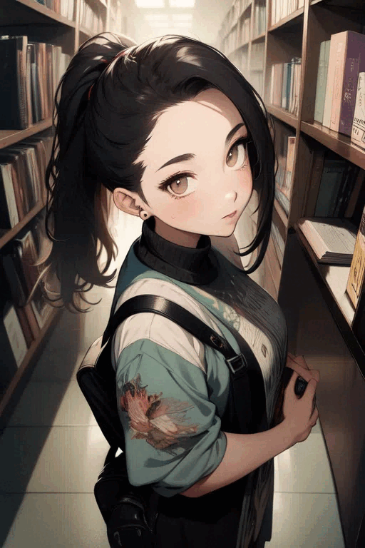 初動画を作ってみた。 AI Works X Facebook はてブ LINE コピー 2023.10.12 webpファイルをGIF形式に変換する事でやっとHPにアップする事が出来ました。 古本屋の女の子 花仙子